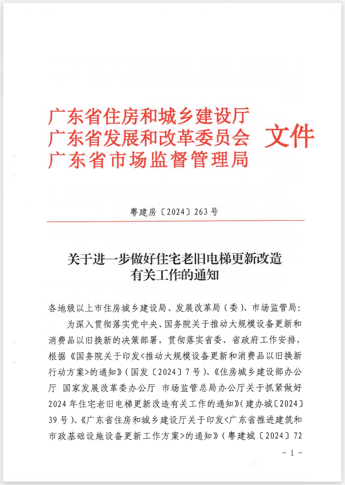 相關文件:關于進一步做好住宅老舊電梯更新改造有關工作的通知 - 粵建房[2024]263號